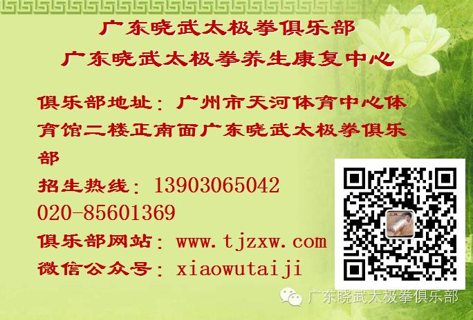 地址:广州市天河体育中心体育馆二楼正南面广东晓武太极拳俱乐部(天河城北门过马路正对面)